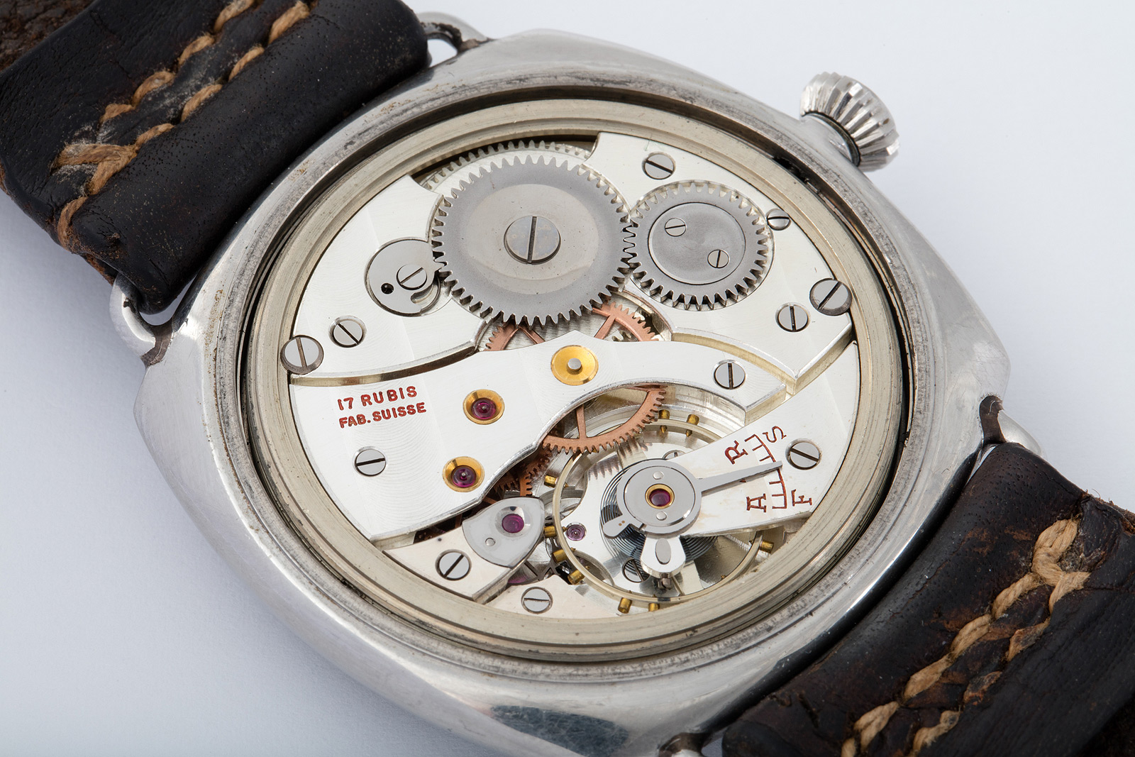 “The dial of the present example is completely unrestored and in immaculate condition, still retaining its shiny surface, and its correct, original blued steel luminous hands. The case has never been polished before, and shows very few signs of having been worn over the course of its 70 some years of age. Even what we believe to be the original strap is still fitted to the watch. Similarly, the Rolex-finished Cortébert caliber 618 movement is in absolutely mint condition, without even a trace of a watchmaker having ever worked on it.”