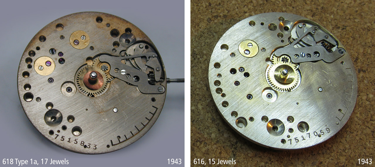 The following comparison makes clear that Cal. 616/618 movements made by Cortebert have the same marks within the same serial range. Cortebert changed the test track slightly after serial number 7.521.000, placing it further inside.