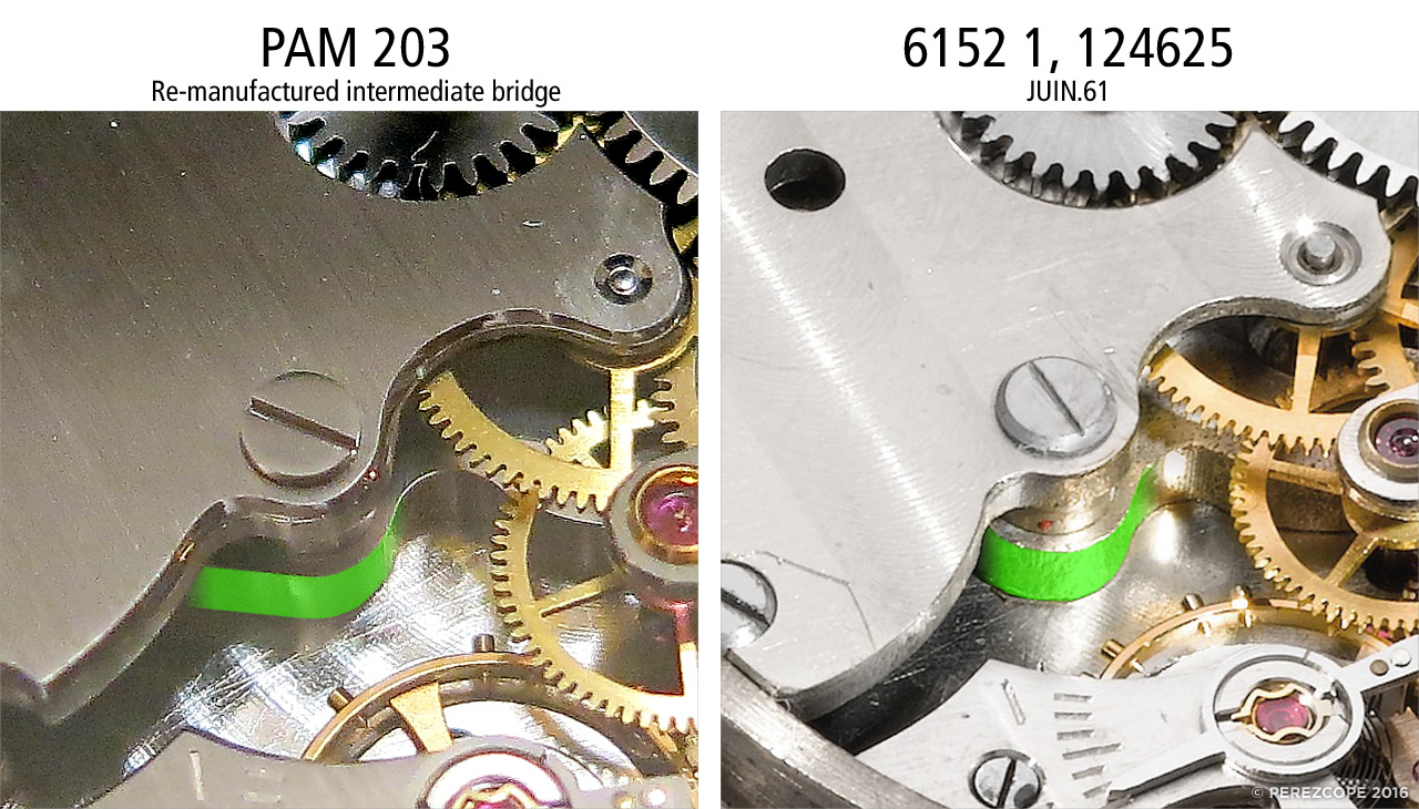 Surprisingly, a closer look at the intermediate bridge of PAM 203 Angelus 240 movements shows that the bridge has a noticeably different shape than usual movements.