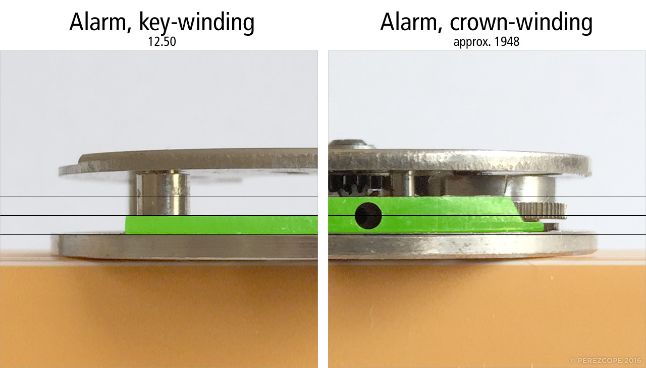 In contrast to what was implied by Mr. Ferretti and according to the results of my research, it is nearly impossible that non-alarm, crown-winding movements were still available in the 1950s.