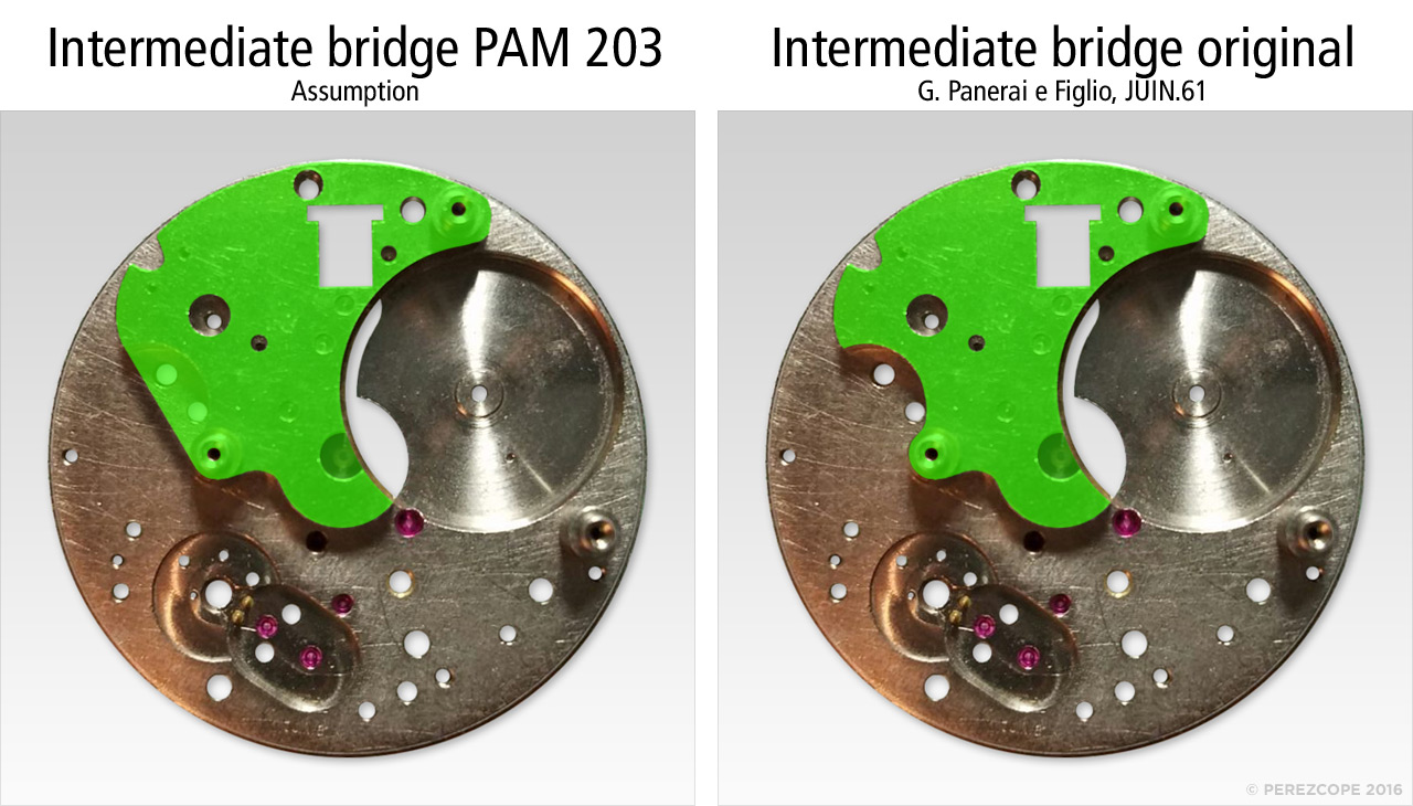 The following picture shows how the intermediate bridge of the PAM 203 probably looks like underneath the barrel bridge (left).