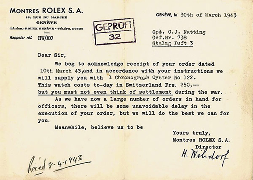 Rolex letter to a British prisoner of war