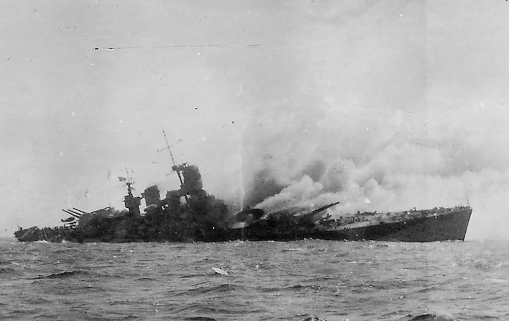 Italian battleship “Roma” hit by German guided bombs