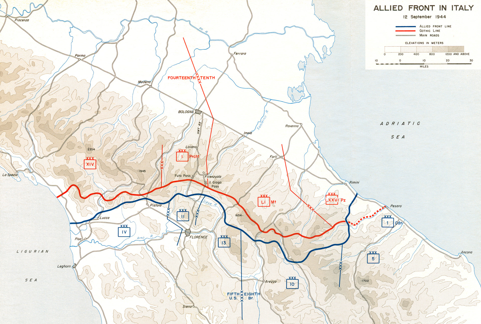 Heavily fortified “Gothic Line”