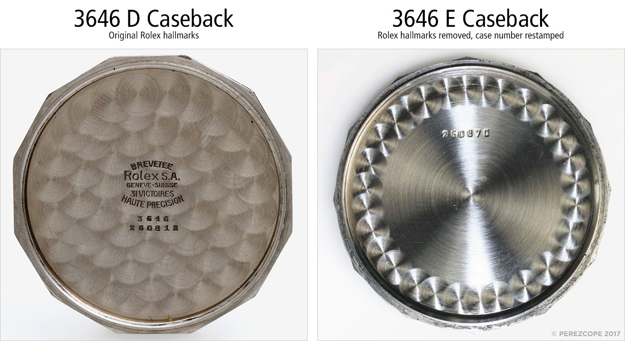Comparison 3646 caseback with Rolex hallmarks vs. anonymous