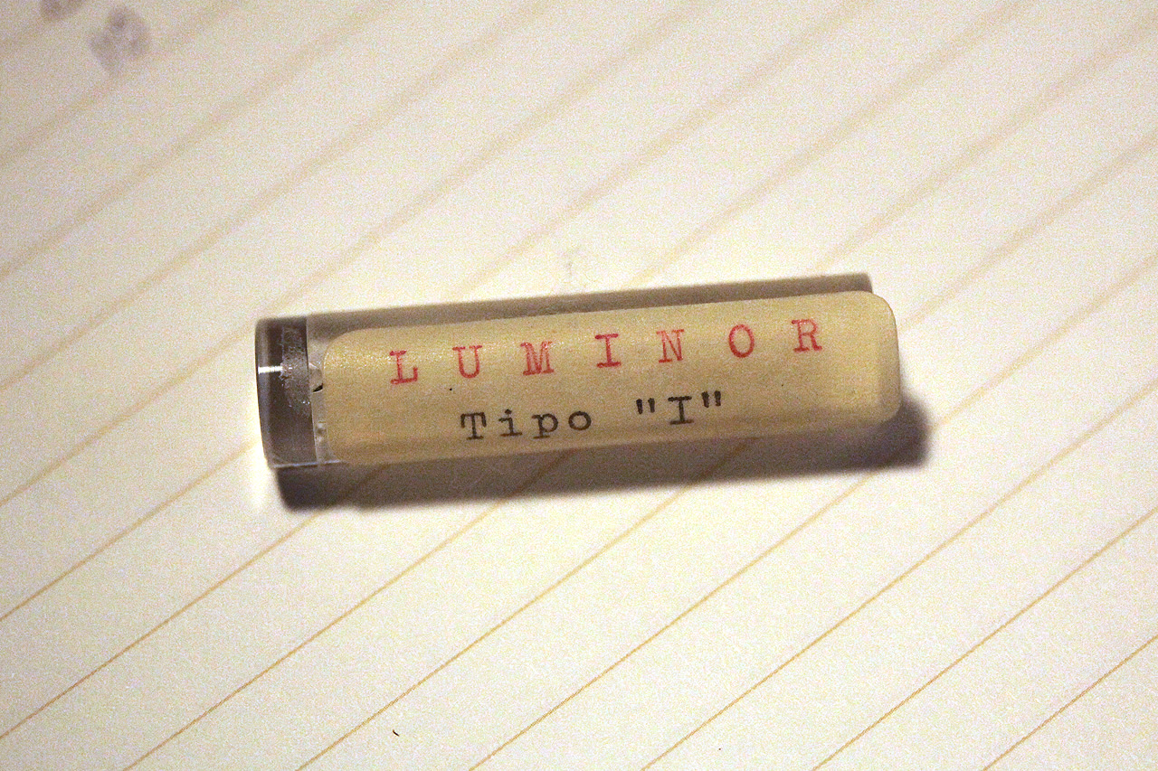 If we look at the early “Luminor Tipo I” jar found in the Villino Panerai, we see an “I” that is very similar to the one on the display plexi crystal. It was not common for Panerai to use Roman numerals, therefore we can assume it stands for the letter “I”. Since these modified 3646 with solid lugs were all about the introduction of “Luminor”, it would make perfect sense that the “I” had something to do with “Luminor”. Following this logic, the “I” could stand for “Innocuo”, the Italian word for harmless. This term was commonly used in relation to tritium lume.