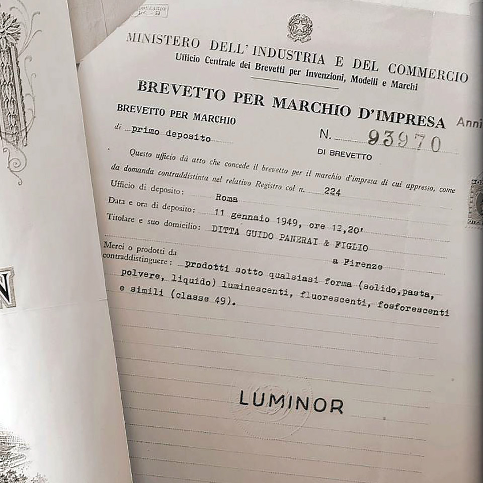 Many years later, in the early 1960s, the world became aware of the significant radiological hazards of Radium lume used in wristwatches and other instruments. All major watch brands switched to Tritium, a less radioactive substance that poses no real threat to human health. Giuseppe Panerai created his own auto-luminous pigments based on tritium and named this new product “Luminor”.