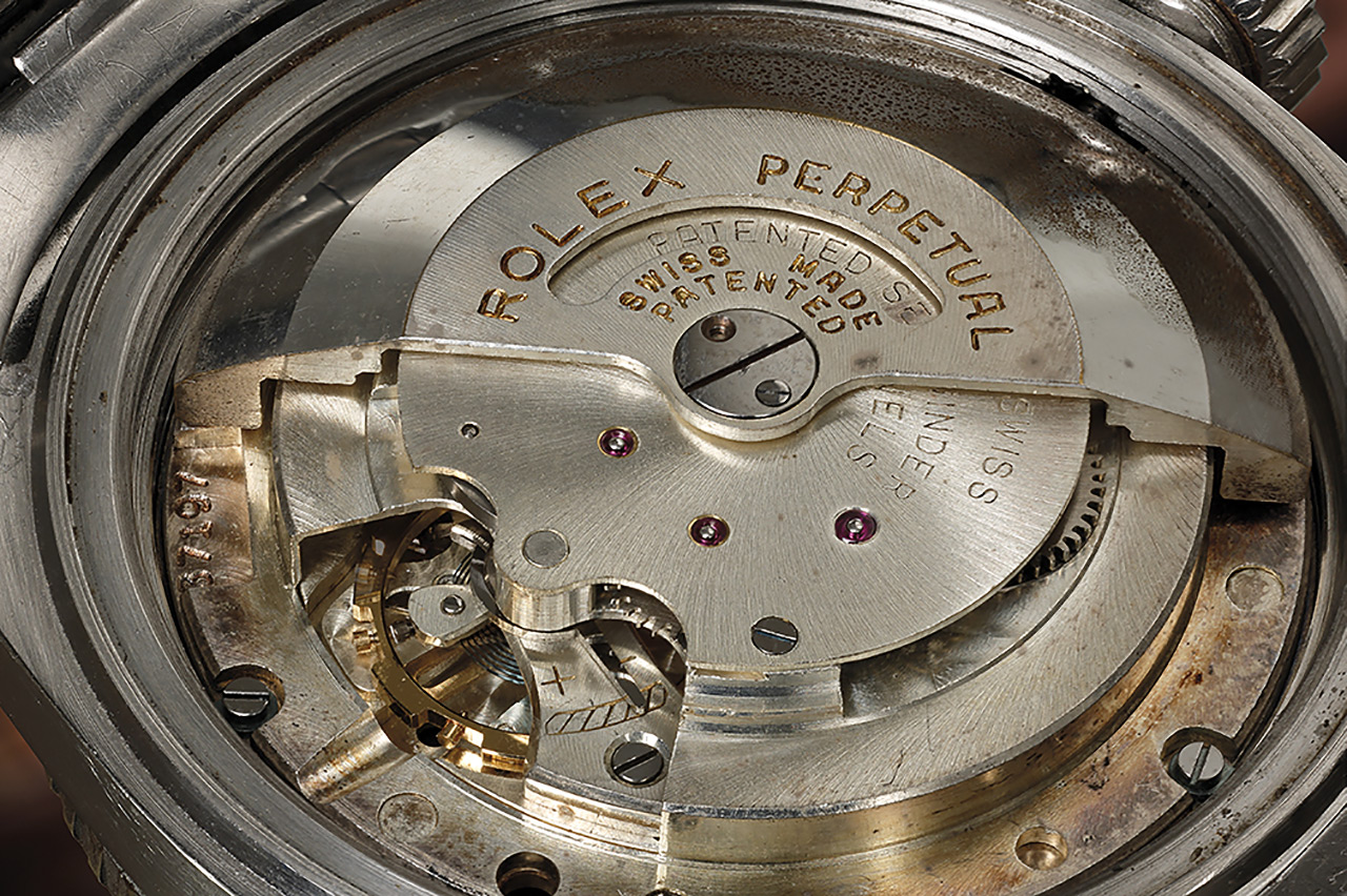 Ref. 6200 was equipped with the Rolex calibre A296 whereas Ref. 6204, the “Small Crown” Submariner, had the calibre A260. The difference is in the size. Calibre A296 has a diameter of 10 1/2 Linge, calibre A260 only 9 3/4 Linge. Both movements beat at 18,000 A/h.