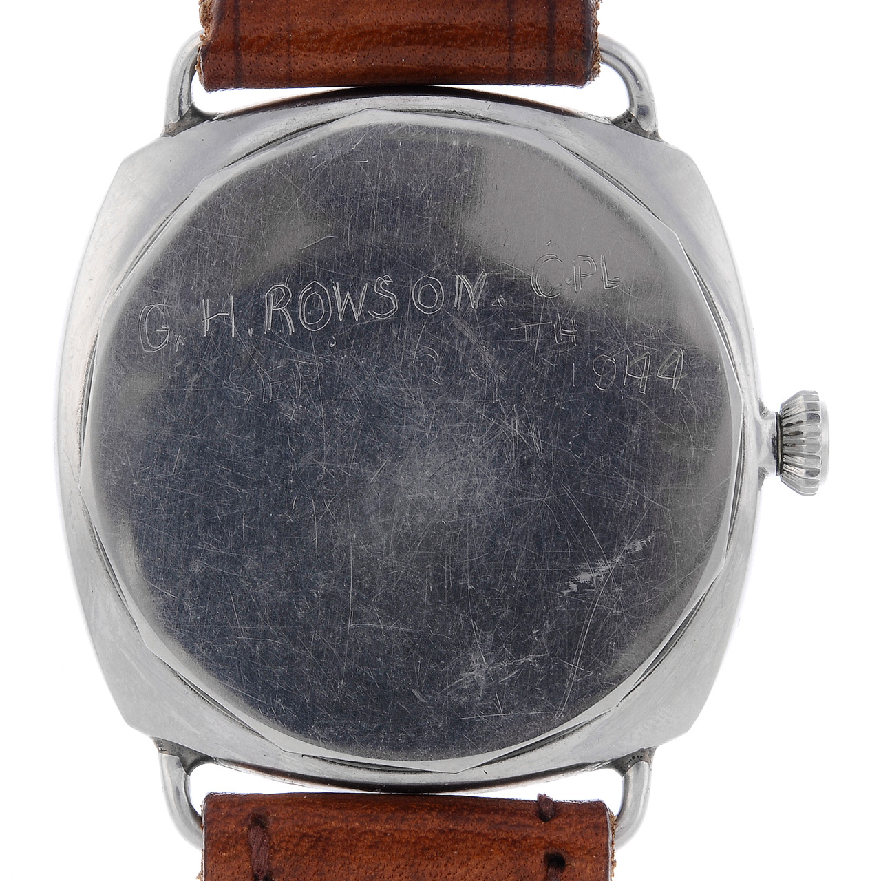 The caseback is signed on the outside. The inscription says: G. H. Rowson, CPL, SEPT. 29 TH, 1944. This inscription was probably made by the British soldier with a nail or something similar. CPL stands for Corporal, an army rank.