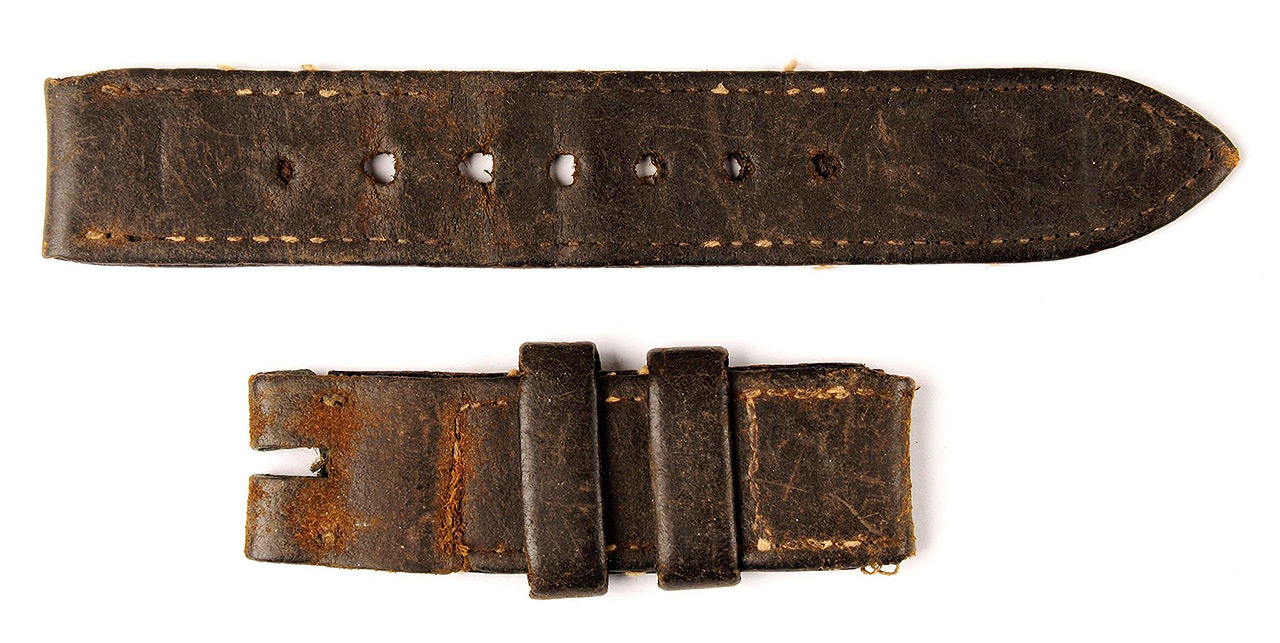 According to Fellows this leather strap is not the original one, but the original strap that watch mounted on the watch when it was taken in 1944 is included in the lot.