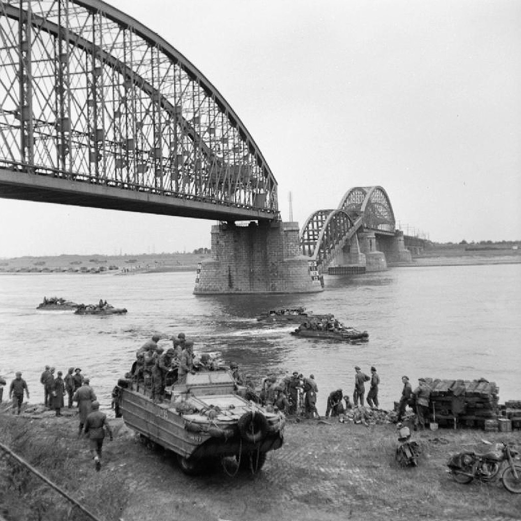 Four years later, the bridge became again the center of the attention. The Allied attack started on September 17, 1944. On September 20, the Allies crossed the Waal River while being fired on in order to capture the north end of both bridges and isolate the German forces on the south bank of the river. Both bridges were successfully seized after bloody fights. The Rhine Bridge in Arnhem could not be seized due to strong German resistance.