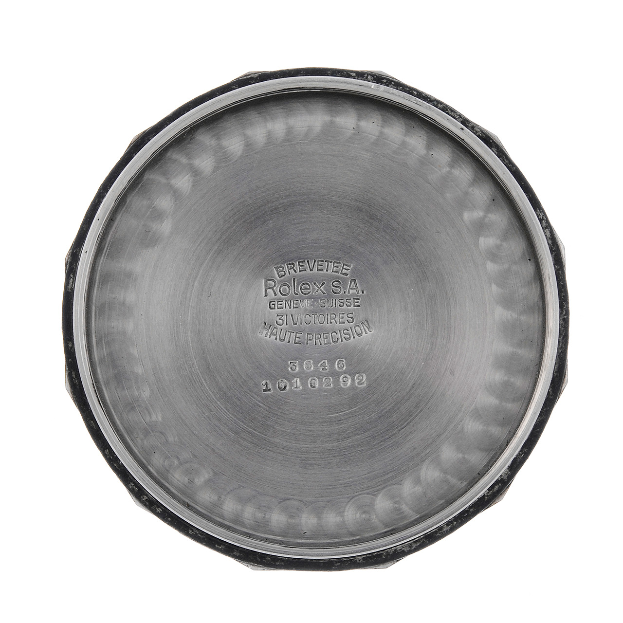 The following image shows a typical Rolex 3646 caseback with Rolex hallmarks.