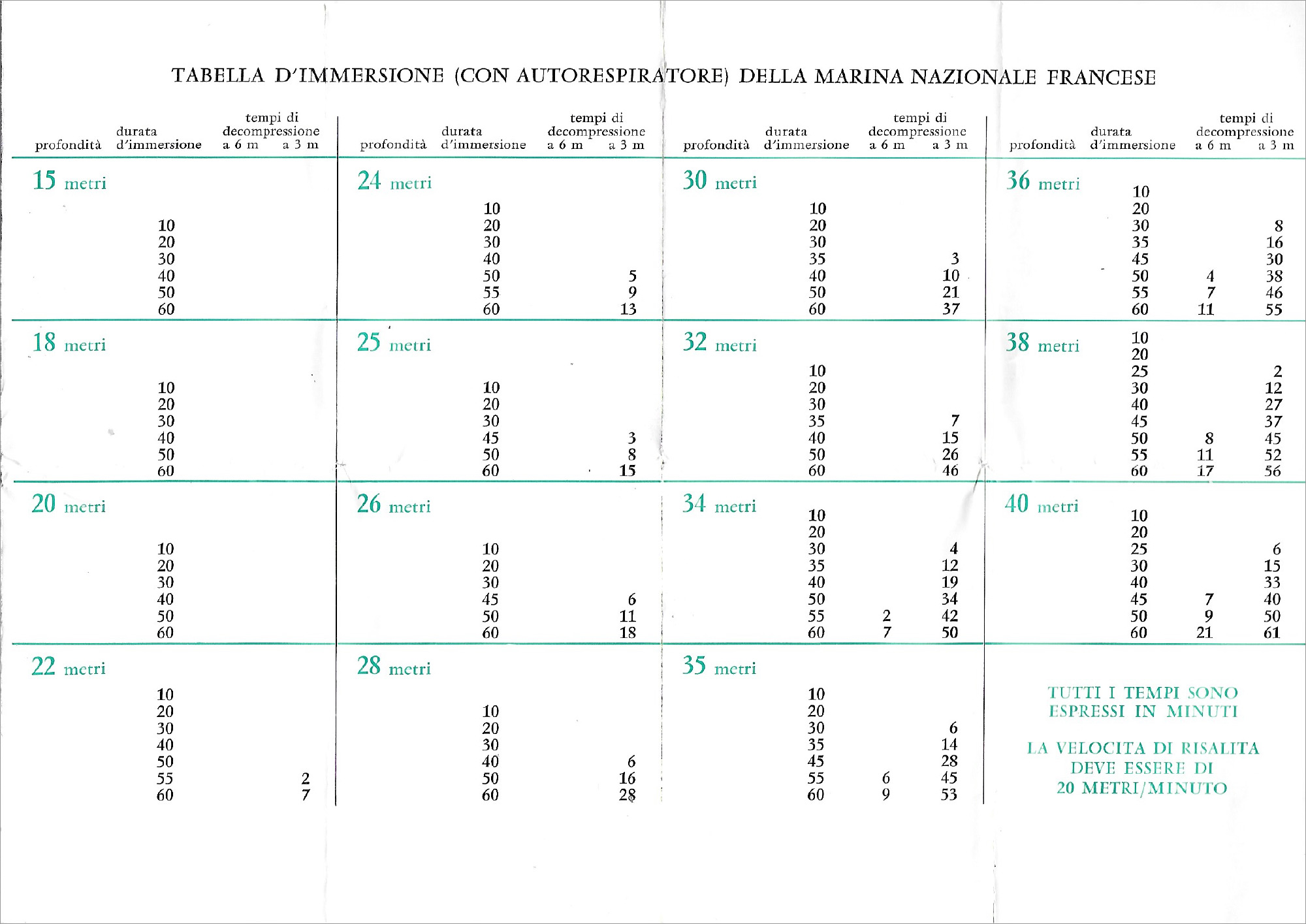 DIVE TABLE (FOR SCUBA) OF THE NATIONAL FRENCH NAVY