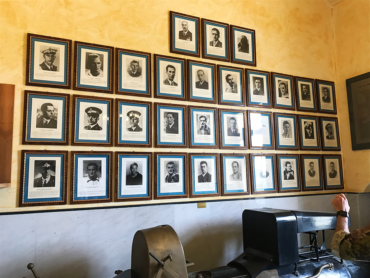 That’s right, 33! This number is an homage to the 33 gold medals of military valour that were awarded to members of the glorious Decima MAS and its successor organisations. Big names like Teseo Tesei, Luigi Durand de la Penne, Gino Birindelli, Junio Valerio Borghese, Mario Arillo, Emilio Bianchi, Luigi Ferraro, Giorgio Giobbe, Todaro Salvatore and Licio Visintini are honoured on that wall. Many of the medals were awarded posthumous, meaning the divers were killed in action.