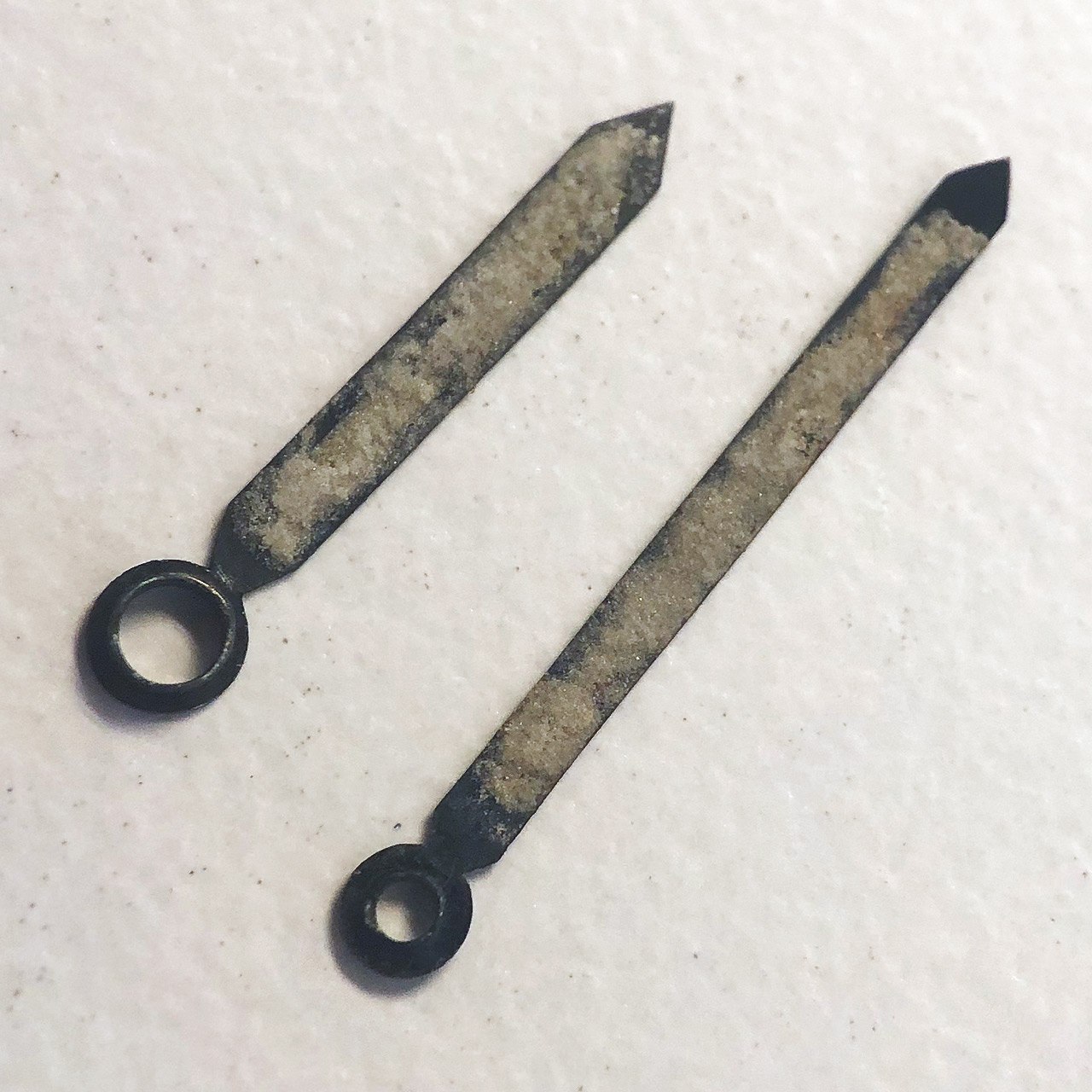 Let’s have a look at the hands now. The present watch features skeletonized heat blued steel hands with radium lume. The blue colour was achieved by heating up the metal to a certain degree. This was done as a method to prevent the hands from rusting too quickly.