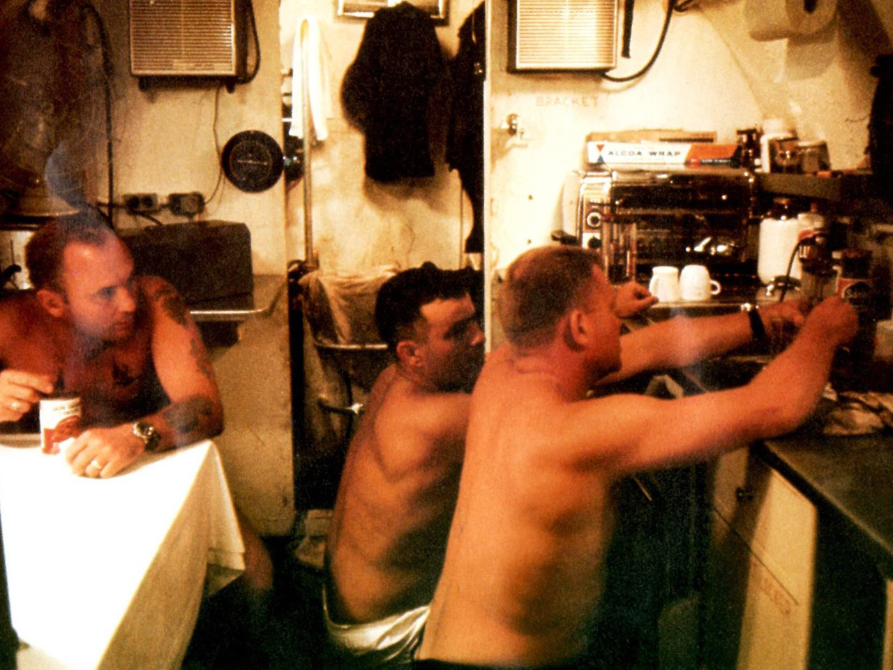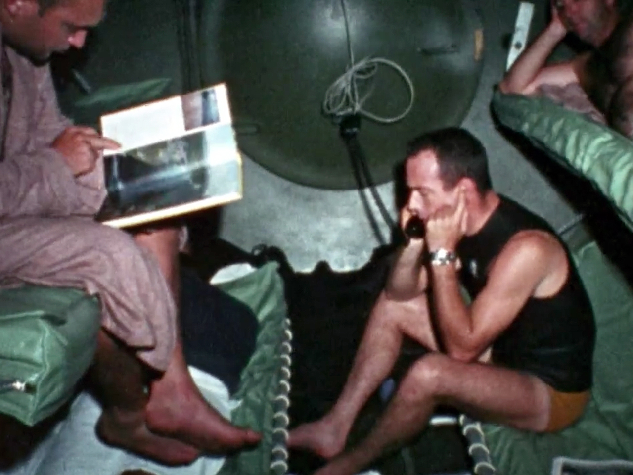 Most crew members on the photo above are seen wearing a Rolex Submariner but a closer look reveals Berry Cannon (bottom left) was wearing a Blancpain Fifty Fathoms Mil-Spec. Carpenter is clearly wearing a Rolex Submariner 5512.