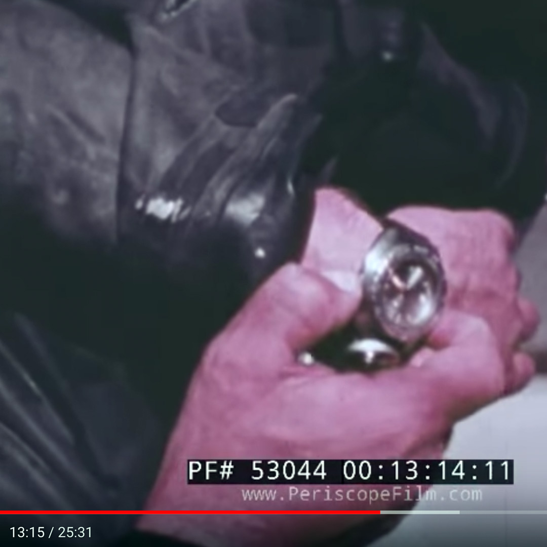 A Doxa Sub 300 T Conquistador with rare silver dial can be seen in action in a 1973 US Navy documentary about the Deep Diving System Mark 1.