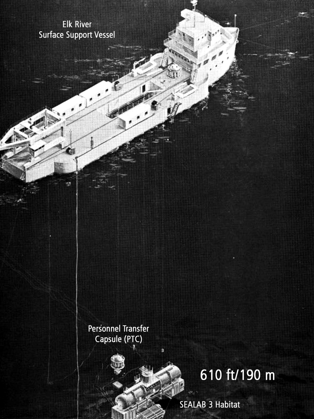 Four Aquanauts of Team One, namely Barth, Cannon, Blackburn and Reaves, made a rapid descent (4 ft/minute) to depth inside the deck decompression chamber of the diving support vessel and were lowered to the bottom in an attempt to save the habitat.