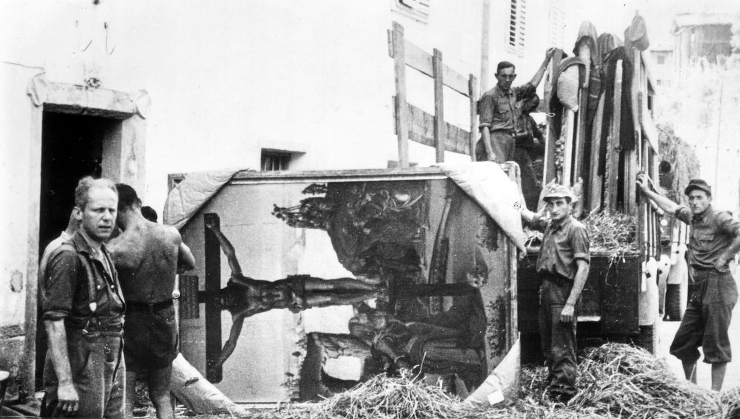 Knowing it was only a matter of time until Italy would be liberated, the Nazis started confiscating everything useful, materials, vehicles, cattle, food, etc. Semi-finished Italian aircraft carriers were taken apart to extract the precious aluminium desperately needed for new aircraft and rockets. It is a well-known fact that Nazi Germany systematically looted Italian art from private collections and famous Italian museums. All of the above can be read in interesting non-fiction books like The Monuments Men and The Venus Fixers.