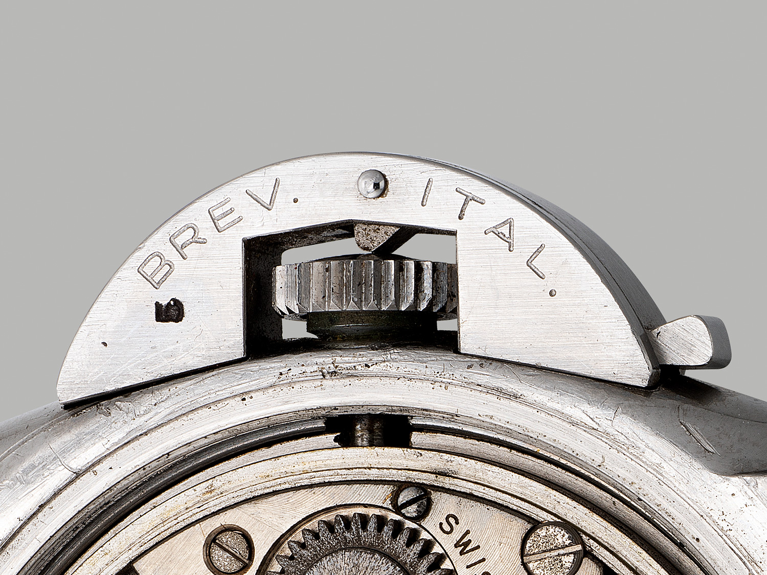 The iconic crown-protecting device features “Brev. Ital.” engravings which refer to the Italian patent filed by Giuseppe and Maria Panerai on Nov. 30, 1955. The first Panerai watch to ever feature the half-moon shaped crown guard was the GPF 2/56 from 1956.