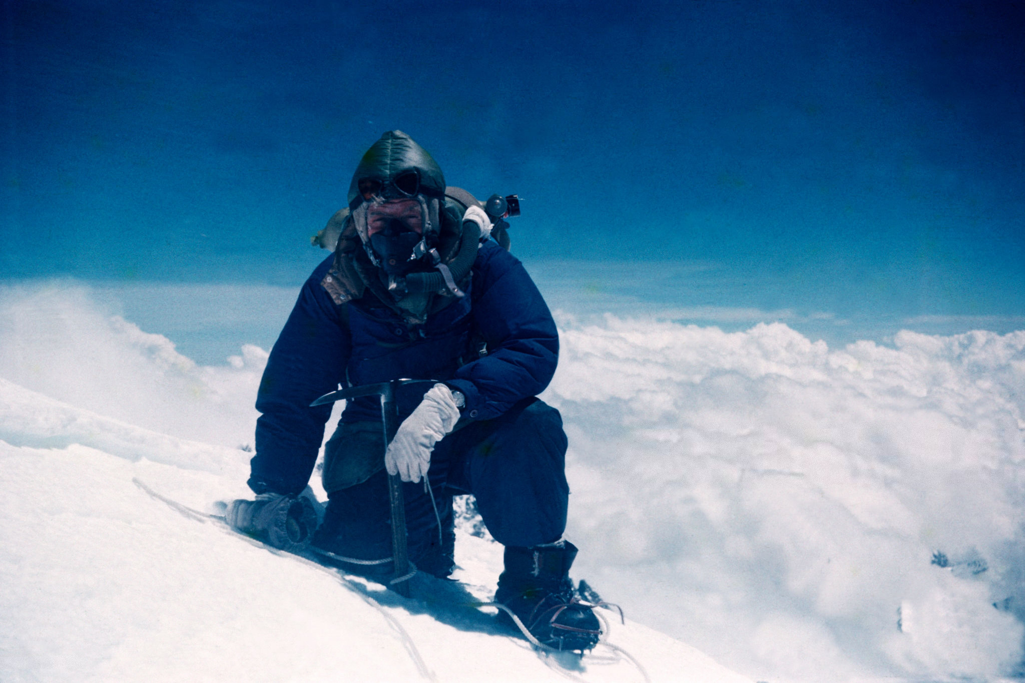 Tom Bourdillon wearing a Rolex Oyster Perpetual Ref. 6098 on the South Summit of Mount Everest