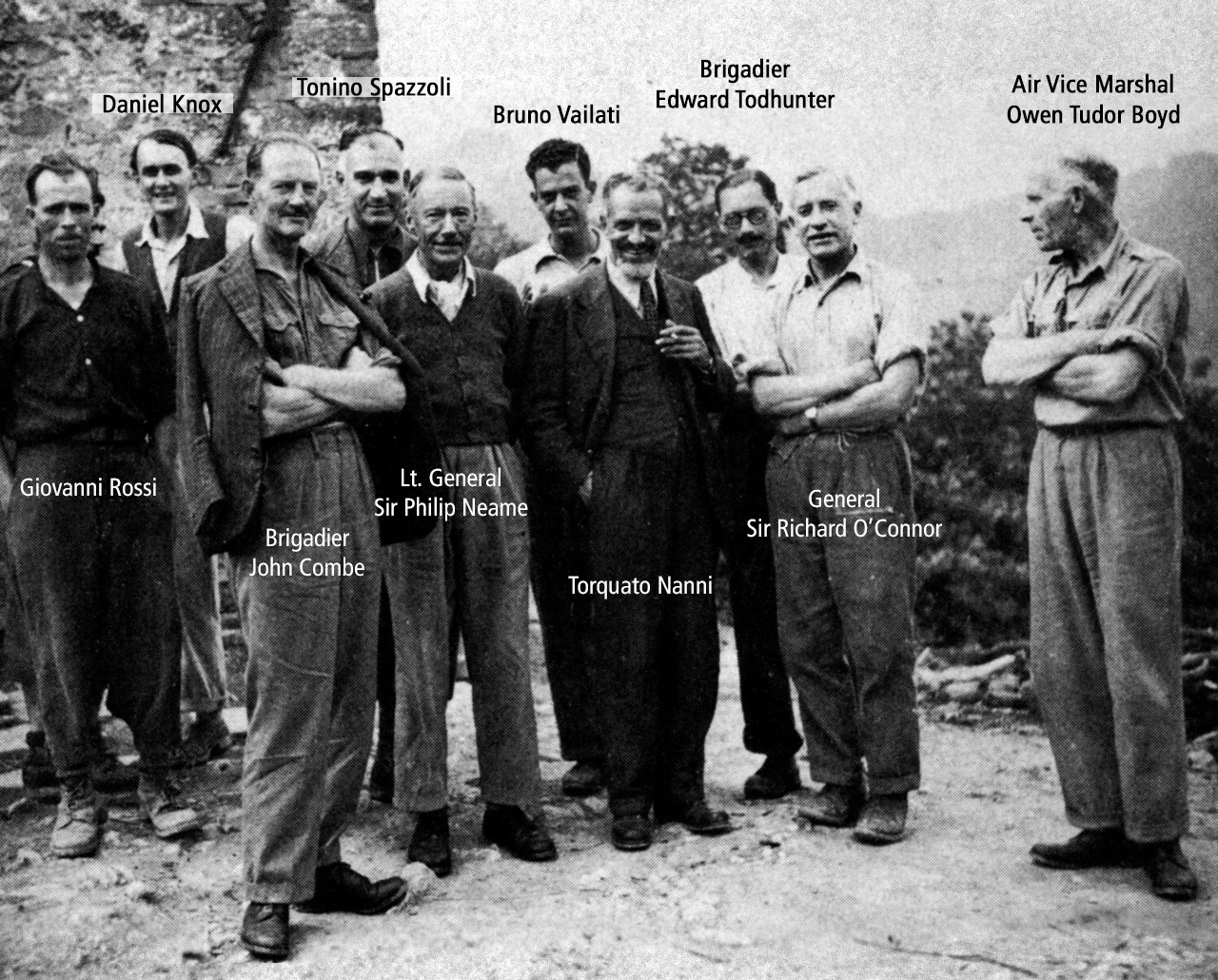 Bruno Vailati (second row, center) with British General Richard O’Connor (second from right) and the rest of the liberated British officers