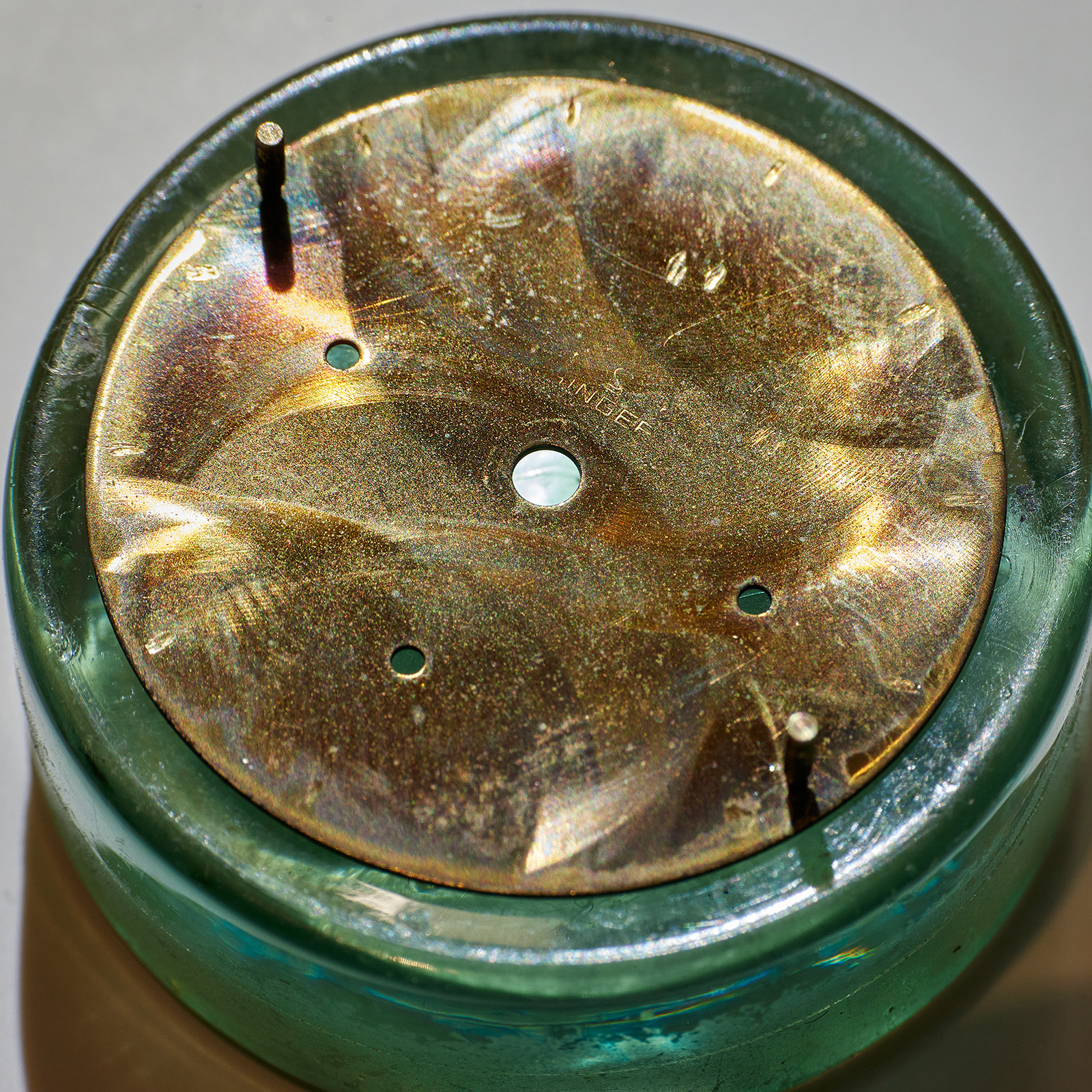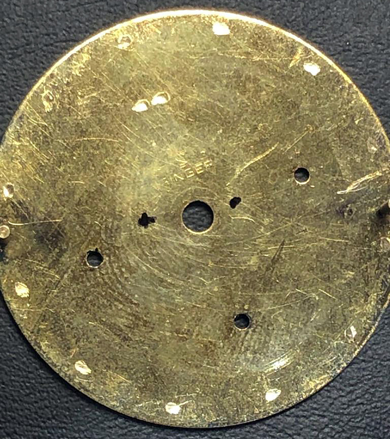 Remember that the ‘JPS Cherry’ dials seen at Jean Singer & Cie SA in the early 2000s were unfinished? Bob Maron sent me a picture of the back of one of the ‘JPS Cherry’ dials he found. On that dial, the hour markers are attached even more messily than on the present watch. One would expect these dials to have been produced in one go and finished in the same way.